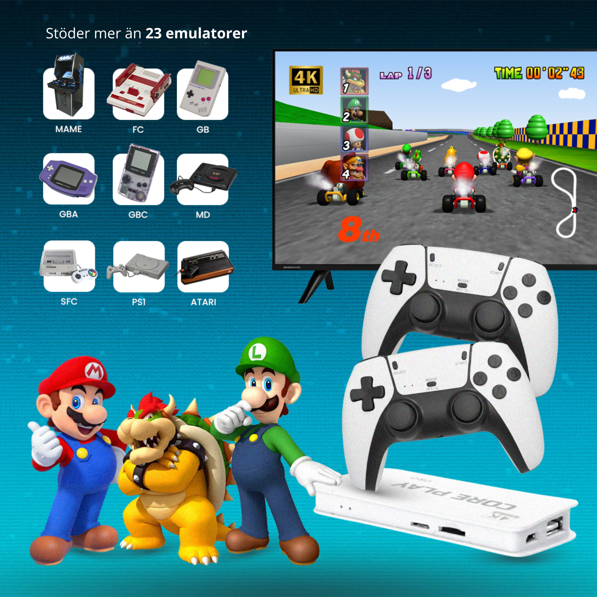 Kliv tillbaka in i världen av nostalgiska spel med CorePlay Stick. Den ultimata retro spelupplevelsen. Utrustad med över 30.000 tidlösa spel som du kan spela direkt.